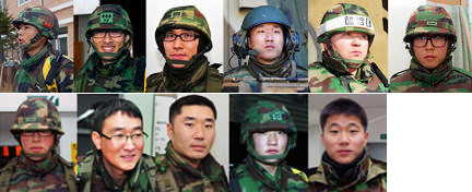 ▲ 지난 11월 23일에 있었던 북한의 연평도 포격도발 당시 전투에 참가했던 장병들이 수기를 기록했다. 사진 왼쪽 위부터 대위 김정수(7중대장), 대위 하승원(군종목사), 병장 백종협, 상병 박태민, 상사 한훈석, 이병 강병욱(의무병), 이병 윤성문(의무병), 중사 신용한, 중사 안준오, 하사 김영복, 하사 이재선. /연합뉴스