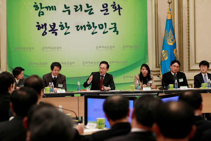 이 대통령은 특히 "문화는 미래성장 동력의 중심이 되는 문화산업과 문화생활의 측면"이라면서 "이 두가지가 다 소홀히 할 수 없는 매우 중요한 것으로 동시에 이루는 정책, 전략이 매우 필요하다"고 강조했다.