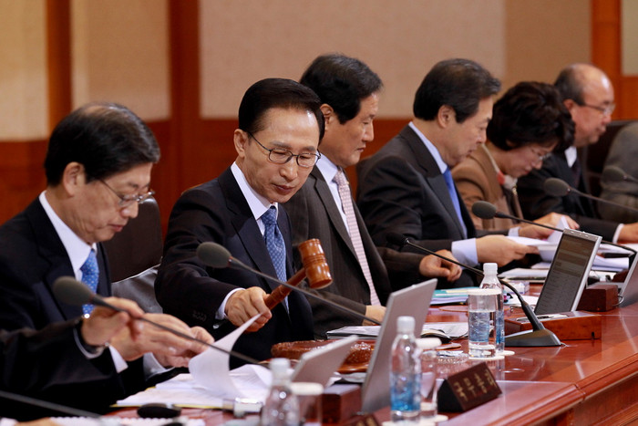 이 대통령은 또 서민경제에 대해 "연말연시에 소비가 너무 위축되지 않도록 하는 것이 좋겠다"면서 "소상공인들, 재래시장 상인들 등 서민들이 위축되지 않도록 온누리 상품권 활성화 등 신경을 써 달라"고 당부했다.