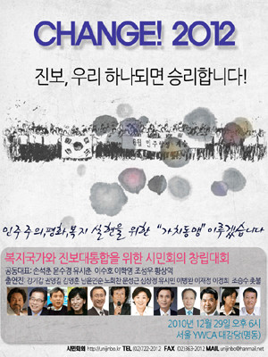 좌파 진영이 29일 오후 6시 서울 명동 YMCA회관에서 2012년 대선을 위한 연대단체 창립식을 갖는다.