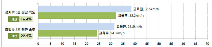 또 출발 후 5초간 평균속도가 교육전 31.5km에서 24.3km로 줄어들자 연비개선은 22.9%에 이르렀다.