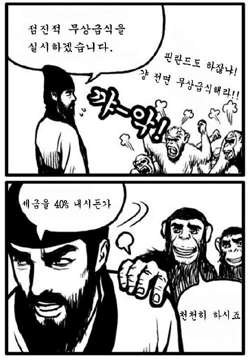 다음은 인터넷에 게시된 무상급식 패러디물들