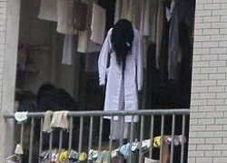 마치 베란다에서 목을 매 자살한 것 같은 이 사진을 보면 영화 '링'에 나오는 귀신이 아니냐고 생각할 수도 있다. 하지만 이 무서운 ‘풍경’은 중국의 한 여성이 속옷도둑을 막기 위한 계책이라고 프레스1이 14일 전했다.