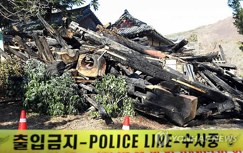 부산 범어사 천왕문 방화사건은 같은 절 암자에 기거하는 40대 신자의 소행으로 드러났다.