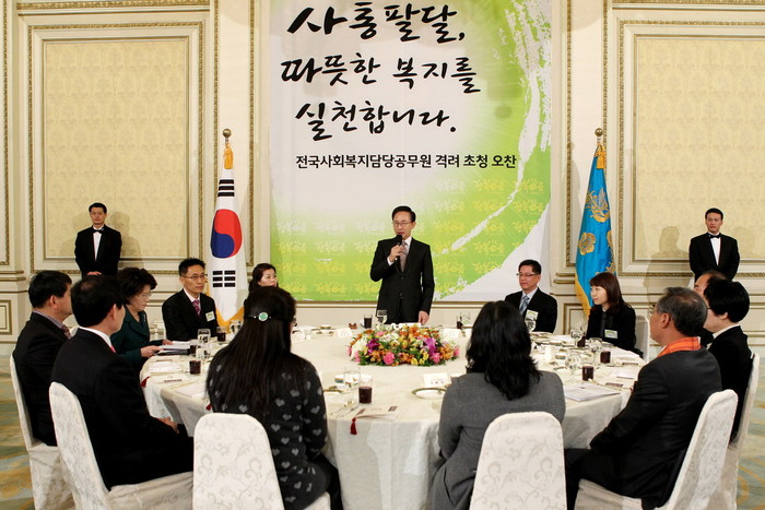 이명박 대통령은 이날 청와대로 사회복지 담당 공무원들을 초청, 오찬을 함께 하며 이같이 밝혔다.