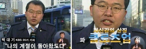 특히 해당 영상을 캡처한 네티즌이 자막으로 집어 넣은 '박대기 KBS 35기 기자, 나의 계절이 돌아왔도다', '자신감의 상징 파워 클로즈업'이란 문구가 화면상에 등장한 박 기자와 절묘한 조화를 이루며 보는 이로 하여금 웃음을 자아내고 있다.
