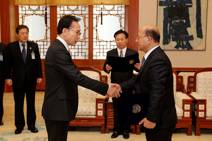 이명박 대통령은 1일 오후 청와대에서 박한철 신임 헌법재판관에게 임명장을 수여했다.