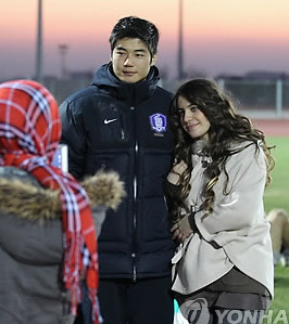 ▲한국 축구 국가대표팀 기성용이 8일 새벽(한국시간) 터키 이스탄불 아타튀르크 올림픽 스타디움 보조 경기장에서 이스탄불 여성팬들과 기념촬영을 하고 있다. (연합뉴스)