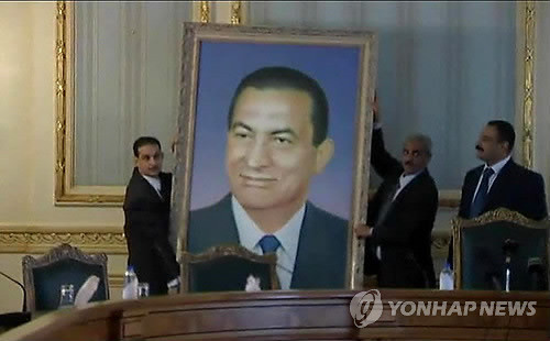 ▲호스니 무바라크 전 이집트 대통령의 사진을 철거하고 있는 모습 (AP=연합뉴스)무바라크가 UAE 측과 오랫동안 친분을 쌓아왔다는 점도 UAE 망명설에 힘을 보태고 있다. 카라시크는 "UAE는 무바라크의 충실한 벗이었다"고 말했다.