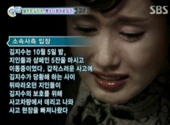 김지수는 2000년에도 양주를 먹고 만취 상태로 무면허 운전을 하다 경찰 단속에 적발된 적이 있다.
