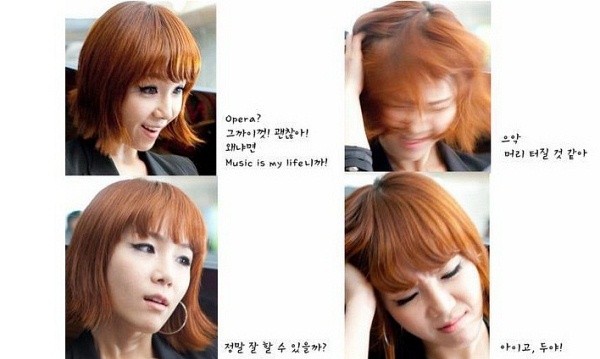 첫 번째 사진에선 “오페라? 그까이것! 괜찮아! 왜냐하면 음악은 내 삶이니까(Music is My Life)”라고 말하며 특유의 발랄한 표정을 짓고 있다. 하지만 두 번째부터는 “정말 잘 할 수 있을까?”, “생각만큼 잘 안되네”라는 글처럼 잔뜩 고민하는 모습이 이어진다. 이어 뒷부분에는 갈색 단발머리를 세차게 흔들며 “으악 머리가 터질 것 같아”, “힝! 울고 싶어”라고 애교 섞인 불평을 늘어놓고 있다.