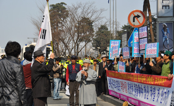 대한민국어버이연합, 납북자가족모임, 남침용땅굴을찾는사람들, 한미우호증진협회 등 4개단체는 31일 오후 서울 중학동 일본대사관 앞에서 독도교과서 관련 일본을 규탄하는 집회를 가졌다.