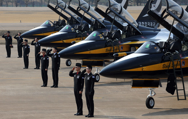 2007년 10월 서울 에어쇼를 끝으로 잠정 해체됐던 공군의 시범비행단 ‘블랙이글스’가 국산 초음속 연습기 T-50B로 부활했다.