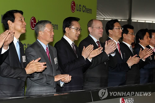 이 대통령은 이날 충북 오송 과학산업단지에서 열린 LG화학 전기차 배터리공장 준공식에 참석, 축사를 통해 “LG화학은 2009년 전기차용 리튬전지를 상용화했으며 오늘, 세계 최대 규모의 자동차용 리튬 이차전지 생산기지를 준공하게 됐다”고 축하했다.