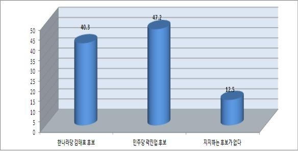 연령대별로 곽 후보는 20~40대 젊은층의 지지도가 높았다. 특히 30대 지지율에서는 53.3%를 얻어 26.6%를 얻은 김 후보를 두 배 이상 앞섰다. 김 후보는 중장년층의 지지율이 눈에 띄게 높았는데 60대 이상(64.9%)에서는 곽 후보(24.6%)를 큰 차이로 앞질렀다.
