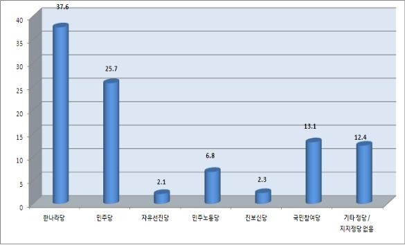 정당 지지도만 봐도 알 수 있다. 여론조사에 따르면 현재 지지하는 정당을 묻는 질문에서 37.6%의 응답자가 한나라당을 꼽았다. 이어 민주당(25.7%), 국민참여당(13.1%), 민주노동당(6.8%), 진보신당(2.3%), 자유선진당(2.1%) 순이었다.