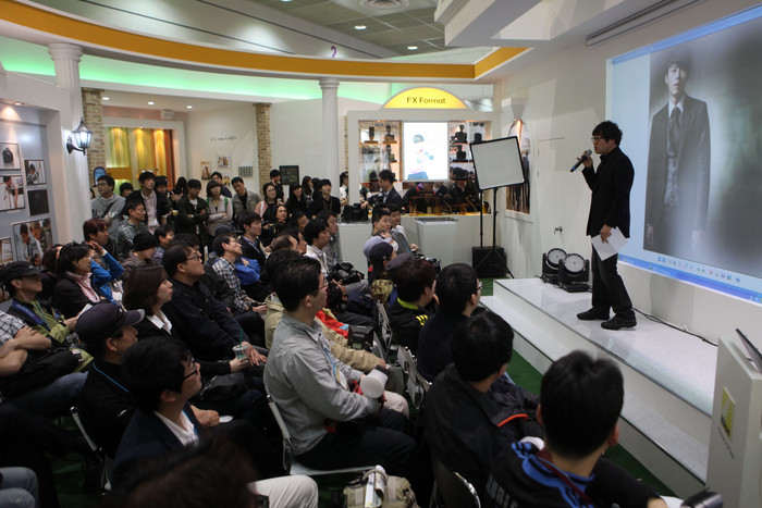손홍주 작가가 사진강의를 하고 있다. 사진가의 노하우를 듣기 위해 몰려 있는 카메라 동호인들.