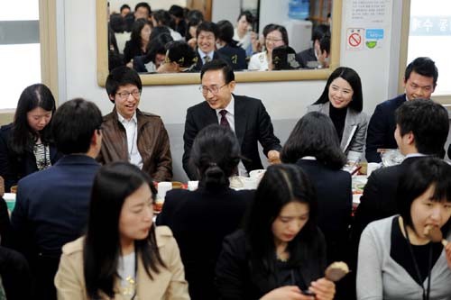이명박 대통령이 청와대 행정인턴들과 점심을 함께 했다.