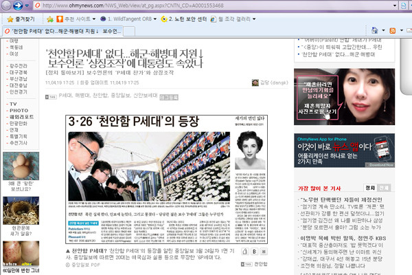 지난 19일 <오마이뉴스>는 ‘천안함 P세대’는 없다는 제목의 기사를 게재했다. 내용인 즉슨 ‘현재 20대들의 안보의식이 높아지고 있다거나 북한에 맞설 의지가 강해졌다는 주장은 대부분 조중동의 이미지왜곡에 의한 것’이며 ‘안보를 생각하는, 천안함 P세대란 존재하지 않는다’는 것이었다.