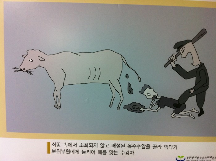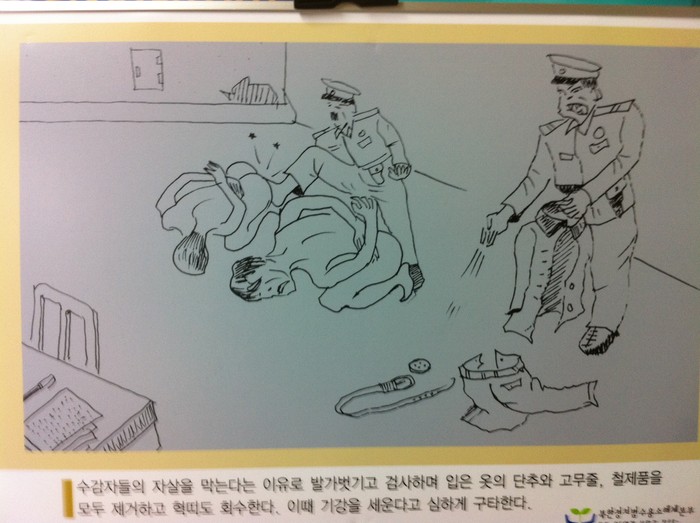 지하철 서울 시청역 지하통로에서 ‘북한정치범수용소 해체본부’가 열고 있는 이 전시회에선 북한 정치범수용소에서 실제로 갖은 고초를 당한 탈북자들이 자신들의 겪은 것을 그림으로 표현한 30여점의 그림이 전시돼 시민들의 눈길을 끌었다.