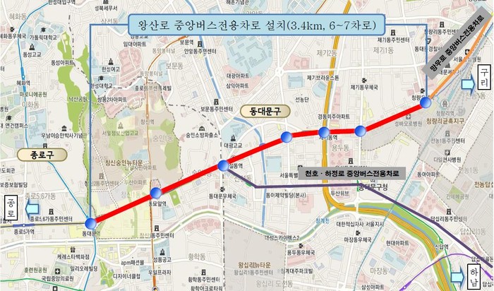 이 공사가 완료되면 동대문역, 동묘앞역, 신설동역, 제기동역, 청량리역 등 지하철 5개역 지상구간이 중앙버스전용차로가 운영돼 기존의 천호·하정로, 망우로 중앙버스전용차로와 연계된다.