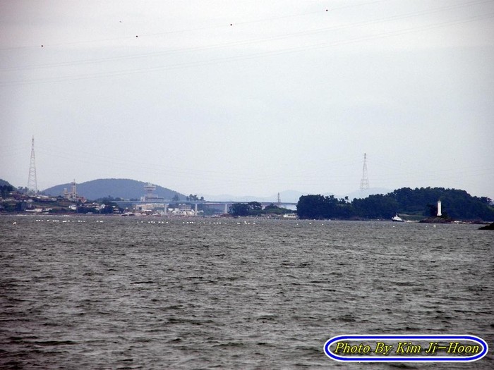 지도에서 보면 견내량이 한산도에서 좀 먼것처럼 보이지만 실제로는 그렇지 않다. 통영과 한산도를 오가는 배를 타고 가면 아래 사진처럼 멀리 견내량이 보인다.