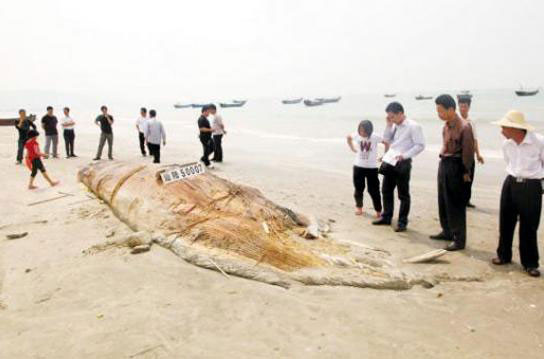 중국에서 몸 길이 17m가 넘는 거대 물고기의 사체가 발견됐다.