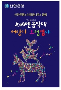 • 신한은행(은행장 서진원)은 “어린이날을 맞아 어린이 뮤지컬 ‘브레멘음악대’ 초청행사와 엄마와 자녀가 함께하는 ‘캐릭터 케익 만들기 클래스’를 실시한다”고 밝혔다.