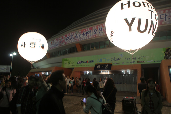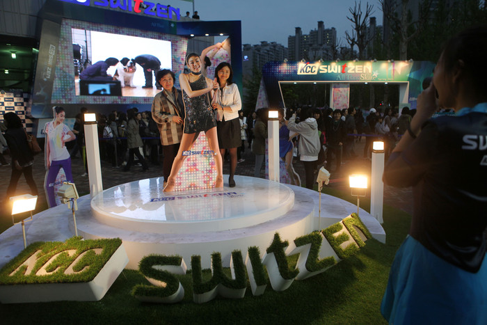 6일 오후 잠실실내체육관에서 김연아 아이스쇼 '피겨는 樂이다' 공연에 앞서 관람객들이 김연아 선수의 홍보물 앞에서 즉석사진을 찍고 있다.