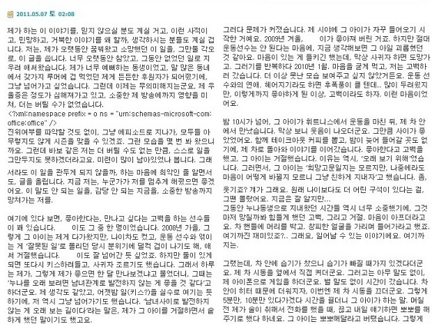 이 글은 게재 직후 곧바로 삭제됐으나 이미 네티즌에 의해 캡처돼 각종 인터넷 커뮤니티 사이트에 퍼져나갔다.