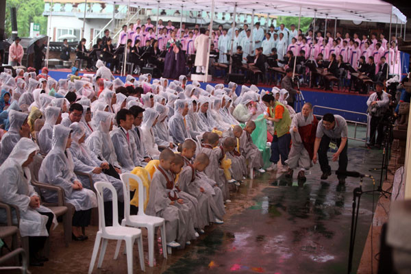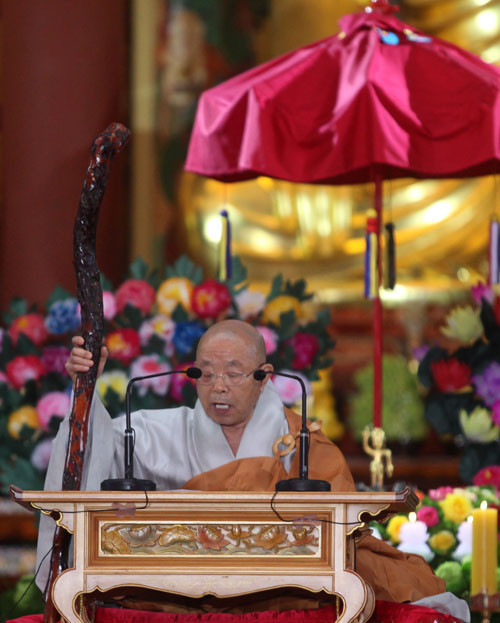 오전 10시부터 열린 법요식은 중생을 깨우치기 위해 북과 종을 울리는 명고와 명종을 시작으로 조계종 총무원장 자승 스님의 봉축사와 조계종 최고 어른인 종정 법전 스님의 법어로 이어졌다.