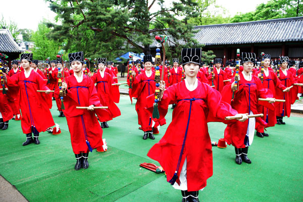 전통문화 재연 행사 가운데 하나인 석전대제는 중요무형문화재 85호로, 성균관대 무용학과 학생들이 팔일무를 추는 가운데, 성현에게 폐백을 올리는 전폐례와 초헌례, 망예례의 순으로 진행됐다.