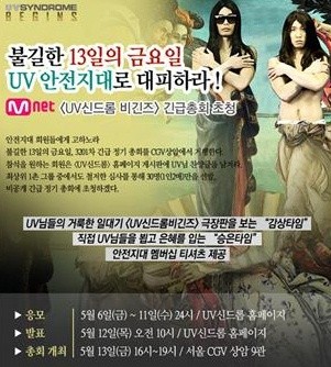 UV신드롬 비긴즈 제작진은 "13일 금요일 오후 4시 UV를 찬양하는 회원들의 모임인 안전지대 멤버들과 CGV 상암에서 제 3201차 긴급 정기 총회를 연다"고 밝힌 뒤, 참석자 선정 방식에 대해서는 "UV신드롬 홈페이지에 UV를 찬양하는 글을 올린 이들 중에서, 철저한 심사 과정을 거쳐 긴급 총회에 참석할 수 있는 자격을 부여했다"고 밝혔다.