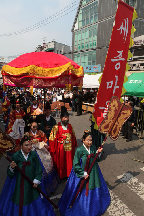 이날 선포식은 세종마을가꾸기회 회원 등 지역 주민 300여명이 참석한 가운데 사물놀이패 공연과 궁중의상 행렬, 세종마을 선언문 발표와 축사, 윤동주 선양회의 시 낭송과 유창 공연단의 풍물놀이 등 다양한 행사로 꾸며졌다. -