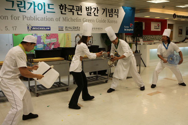 17일 오전 서울 중구 한국관광공사에서 버나드 델마스 미쉐린 동아시아 총괄사장, 이참 관광공사 사장, 정운천 한식재단 이사장 등이 참석한 가운데 세계적인 여행안내서인 '미쉐린 그린가이드' 한국편 발간 기념식이 열렸다.