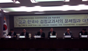20일 서울 프레스센터에서 열린 국가정상화추진위원회(위원장 고영주)와 자유민주연구학회(회장 유동열) 주최 ‘고등학교 한국사 검정교과서의 문제점과 대책’ 학술토론회에서 발제를 맡은 양동안 한국학중앙연구원 명예교수는 “검인정 교과서를 많이 만들고 필수과목으로 전환할 경우에는 국정교과서를 만들어야 한다”고 강조했다.