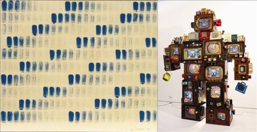 (왼쪽부터) 이우환의 '점으로부터', 백남준의 'TV는 키치다'