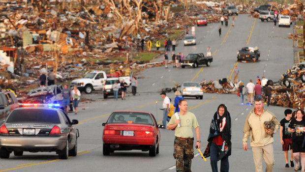 23일(한국시간) 미국 남부 미주리주를 강타한 토네이도로 조플린시의 대로가 지옥으로 변했다. 중심가 대로변은 갈갈이 찢긴 건물이 뒤엉켜 쑥대밭을 연상케 했고 간신히 살아남은 시민들이 장애물 투성이의 대로를 낙담한 채 걷고 있다. 이번 토네이도로 조플린 시에서만 24명이 사망한 것으로 전해지고 있다. (CBS홈페이지 캡처)