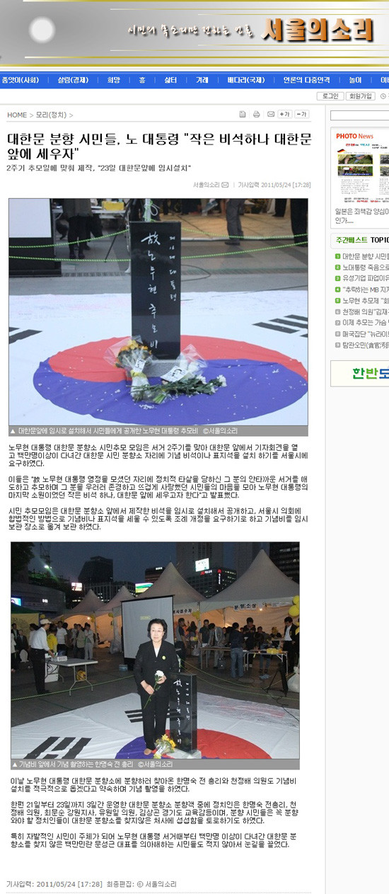 이들 정치권 인사들이 韓 전 총리처럼 태극기를 밟고 비석에 헌화를 했는지는 아직 확인되지 않고 있다. 현재 ‘서울의 소리’ 편집인은 백은종 ‘안티MB카페’ 대표로 2008년 광우병시위를 주도 혐의로 경찰에 수배, 조계사로 들어가 농성을 벌였던 ‘촛불 수배자’ 중 한명이다.