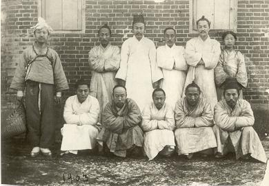 <투옥된 독립협회 회원들(1898.12). 왼쪽 중죄수 복장을 하고 있는 이가 李承晩이다>언급될만한 부분에도 李承晩은 생략