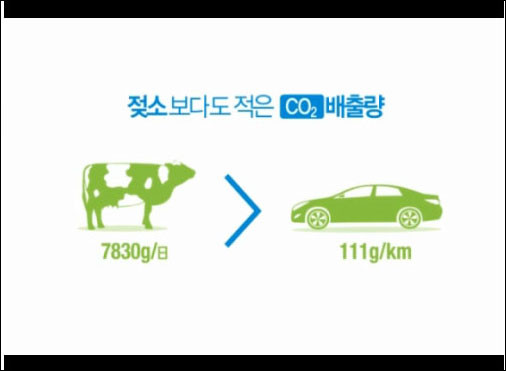 이 광고는 젖소의 '1일 방귀 배출량(7천890g)'과 자동차의 '1㎞당 배출량(111g)'을 비교하며, 쏘나타 하이브리드가 친환경 차량임을 강조하고 있다.
