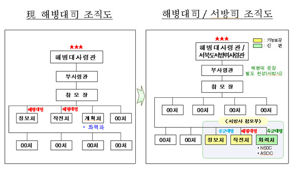 해병대 사령부를 중심으로 해 창설되는 서방사는 해병대사령관이 사령관을 겸직토록 했다. 현 해병대 사령부의 정보ㆍ작전ㆍ화력참모부 인원을 기존의 30여 명에서 50여 명으로 보강하고 육·해·공군 합동 참모단 20여 명을 편성․파견해 합동작전수행 능력을 강화하기로 했다. 또한 서방사 전체 인력도 1000여 명이 보강됐다.
