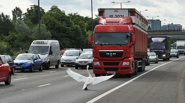영국 일간 메트로 인터넷판은 16일 최근 영국 서부 런던의 한 도로에 백조가 내려앉아 극심한 교통체증이 빚어졌다고 보도했다.