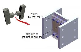 HY-CALM 시스템은 지진 제어를 위해 강재를 이용하는 기존의 댐퍼공법에 고감쇠고무를 설치해 바람에 의한 진동을 함께 제어하는 신기술이다.