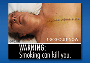 FDA가 이날 공개한 경고문은 목에 뚫린 구멍으로 새어나오는 담배연기를 비롯해 썩어 있는 폐, 가슴 부위가 수술로 절개된 젊은 남성, 산소호흡기를 착용한 중년 남성, 울부짖는 흑인 여성 등 `끔찍한' 사진들을 담고 있다.