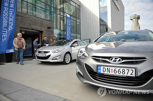 현대차 유럽법인은 23일 유럽시장을 겨냥한 전략 중형 왜건인 i40의 출시를 기념해 노르웨이 남부 라르빅에서 범유럽 시승행사를 개최했다.