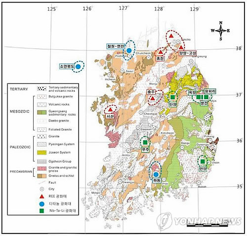 29일 대전 한국지질자원연구원에 따르면 지난해 6월부터 희토류를 포함한 희귀광물이 있을 것으로 추정되는 국내 11곳 가운데 충주와 홍천에서 시료를 채취해 분석한 결과 희토류가 섞인 2천364만t 규모의 광맥이 발견됐다.