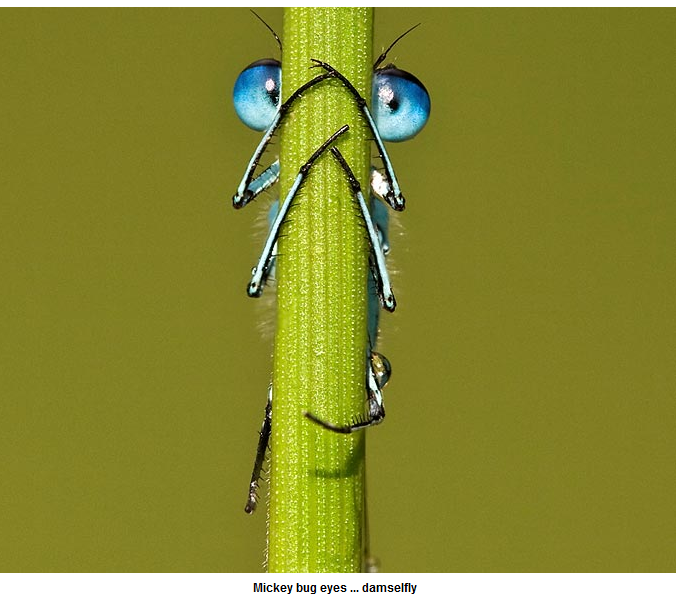 가느다란 나무줄기에 매달린 실잠자리의 모습이다.
