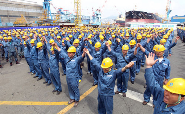 한진중공업 임직원과 협력사 대표 등 1,000여 명은 4일 오전 10시 부산 영도 한진중공업 본사에 모여 조업 정상화 결의대회를 갖고 정상 조업에 들어갔다.