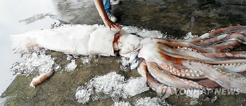 한편, 올 초 경북 포항시 앞바다에서도 몸길이가 7.7m에 달하는 초대형 오징어가 출현한 바 있다.